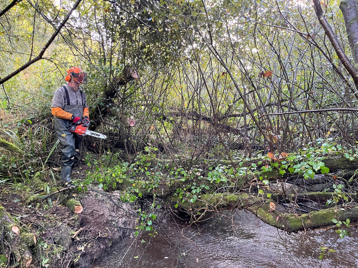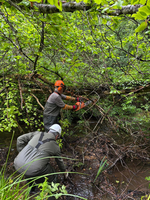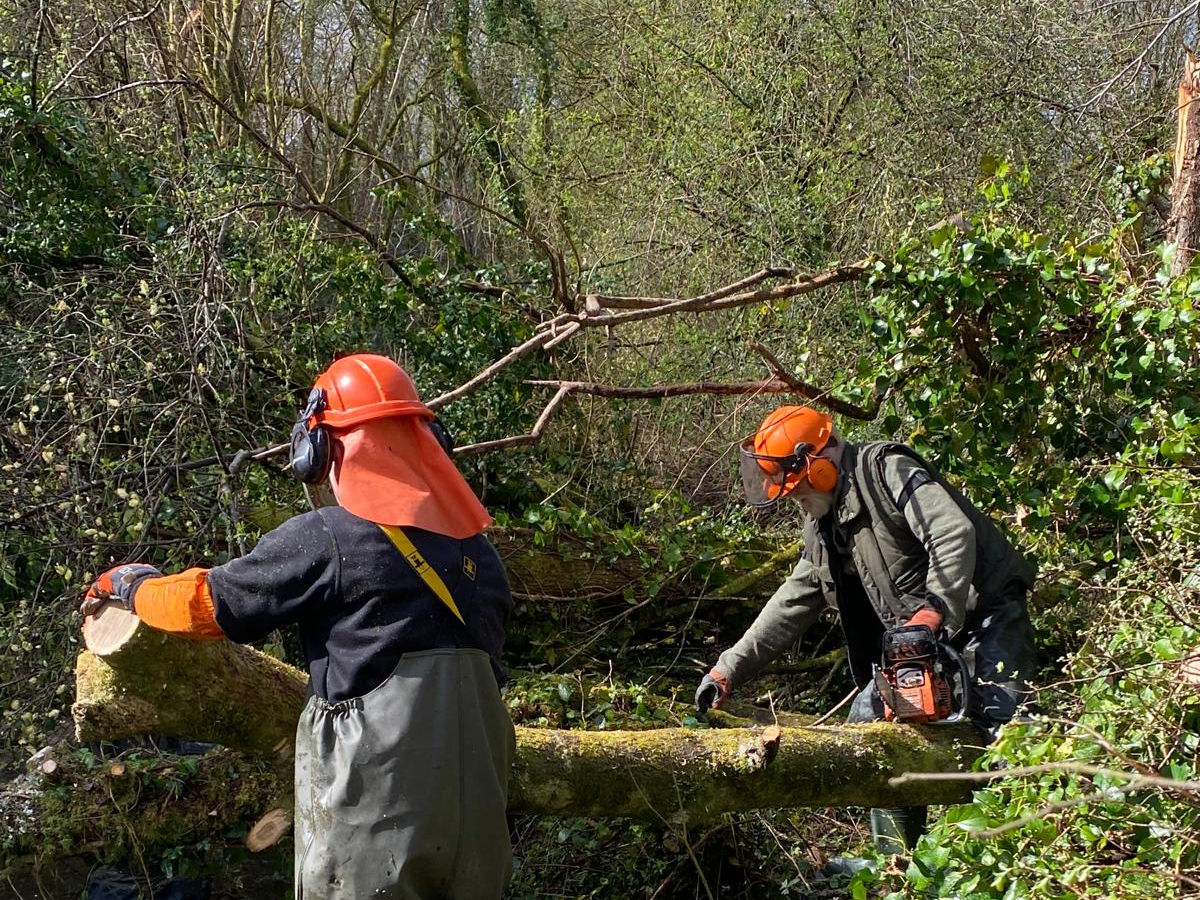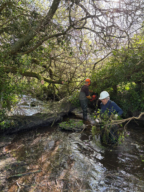 Une séance exceptionnelle a eu lieu avant l'ouverture de la pêche, le 06/03 , pour enlever les arbres abattus le long de la berge de Pont-Torrêt suite à la tempête "Ciaran."
